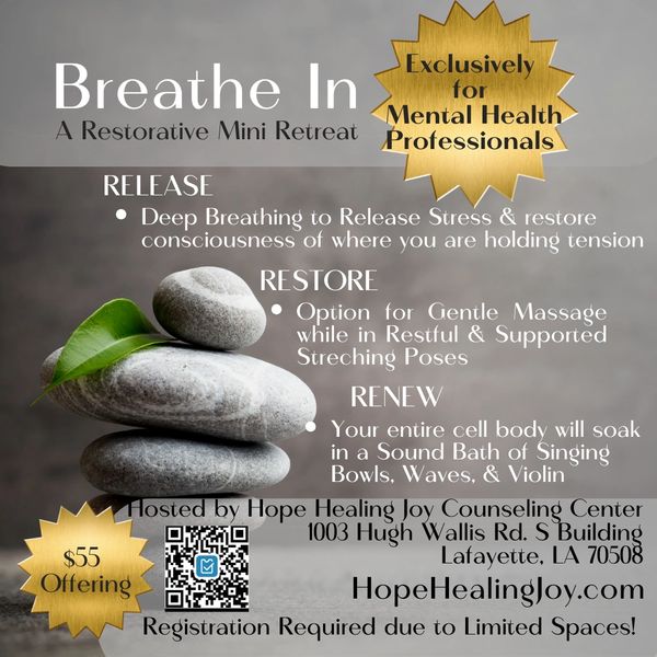 Event exclusive for Mental Health Professionals because we need to care for ourselves to care for others. So we hope you feel rejuvenated after you release, restore and renew in this relaxing workshop.